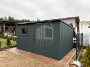 Domek Ogrodowy - Schowek Blaszany 4x4 - okno - drzwi - Antracyt - dach Spad w tył ID442