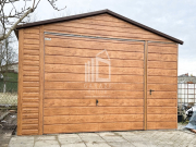 Garaż Blaszany 4,5x5 Brama uchylna + drzwi jasny orzech - drewnopodobny - dach dwuspadowy ID446