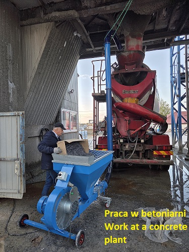 Wygodny w użyciu i transporcie. Zapobiega tworzeniu się "jeży" w betonie. Dostosowany do pracy w węzłach betoniarskich i na budowie, przy podawaniu zbrojenia, fibry i plastyfikatorów bezpośrednio do betonowozu. Łatwy w transporcie.