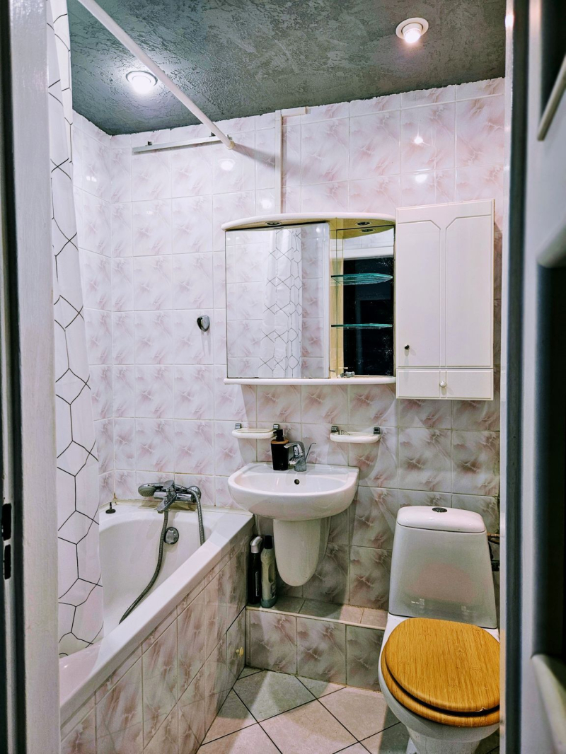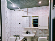 - Łazienka z prysznicem, pralką, umywalką i szafkami