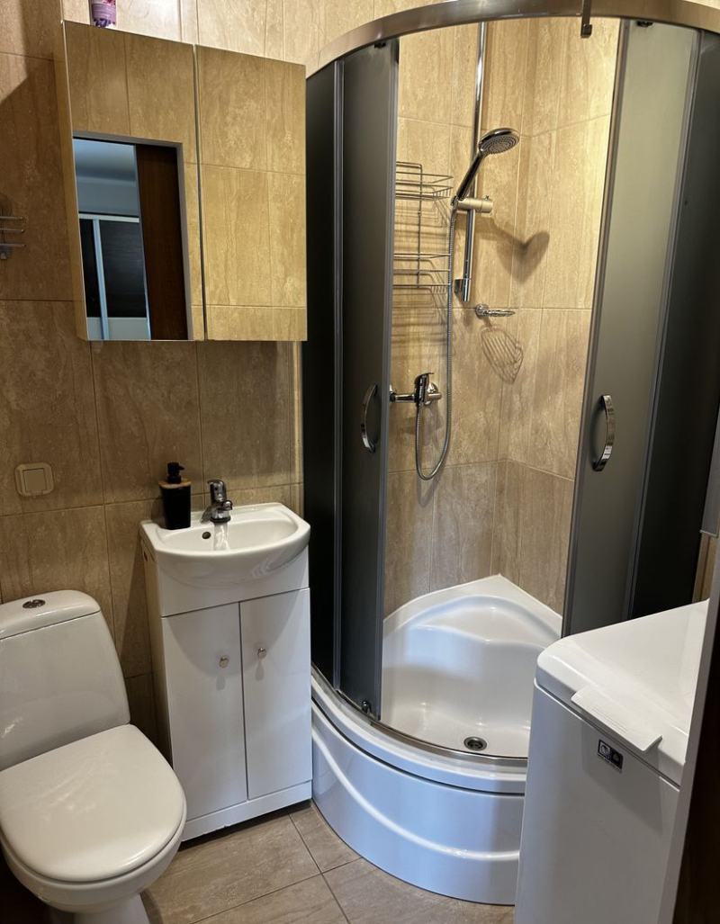 - pełne wyposażenie: pralka, prysznic, szafki, zabudowa kuchenna, telewizor,