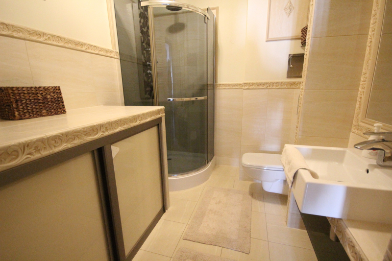 z kabiną prysznicową (panel trójfunkcyjny z deszczownicą), zabudowaną w