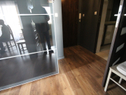 Duży salon z aneksem kuchennym, pojemną, przesuwną szafą, szerokim panoramicznym oknem z wyjściem na taras.