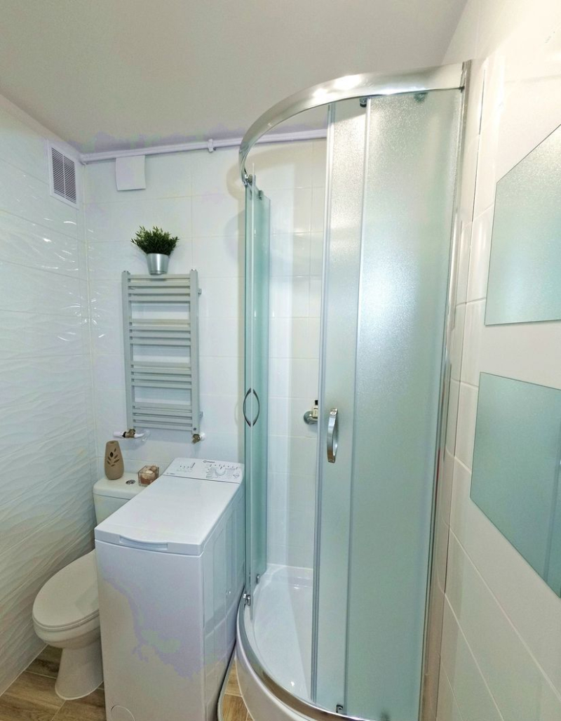 - Aneks kuchenny: lodówka, płyta grzewcza, piekarnik, naczynia, garnki, sztućce, kubki