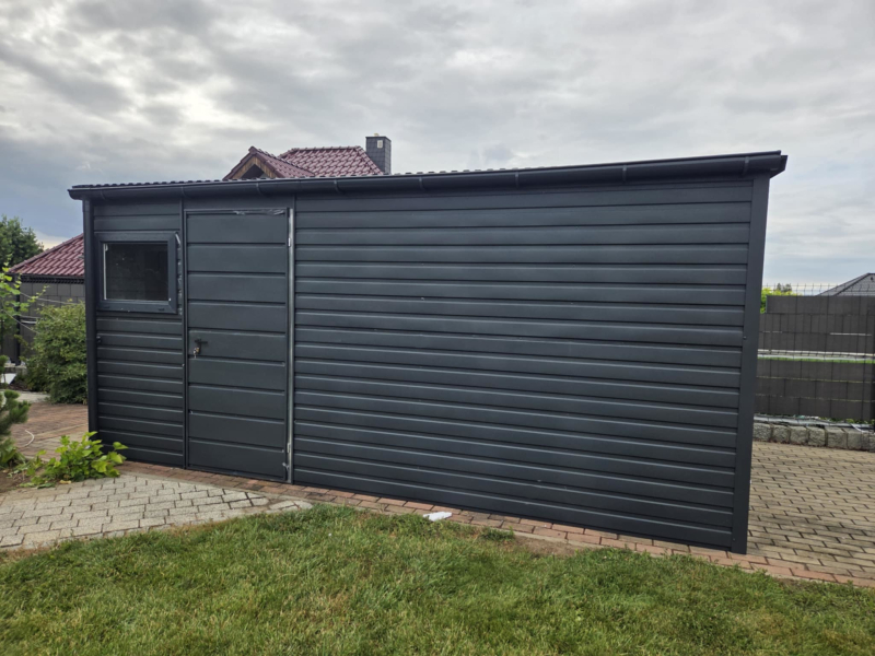 Domek Ogrodowy 5x2m Spad na tył Ciemny Grafit Mat PREMIUM