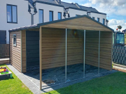 Domek Narzędziowy z wiatą 6x6 dwuspadowy drewnopodobny, drzwi, okno