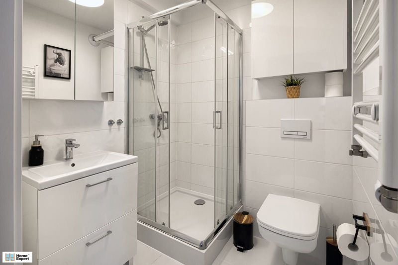 jadalnianego oraz eleganckiej łazienki z prysznicem i pralką.