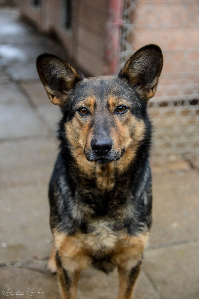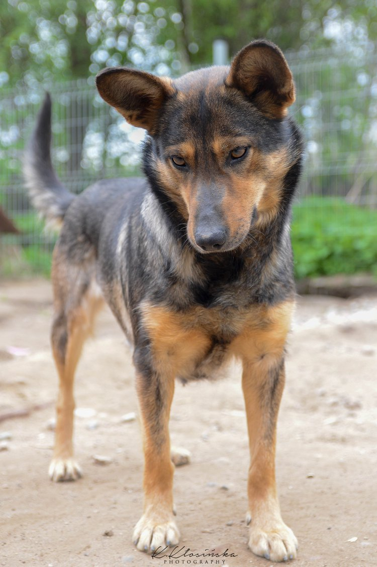 Gaza to średniej wielkości, około 6 letnia suczka. Trafiła do naszego schroniska wraz z trójką innych psów.