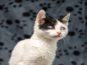 CAŁKA - biało czarna maleńka kotka urodzona w lipcu 2025, która zaznała na starcie problemów ze wzrokiem, spowodowanych nieleczonym kocim katarem.