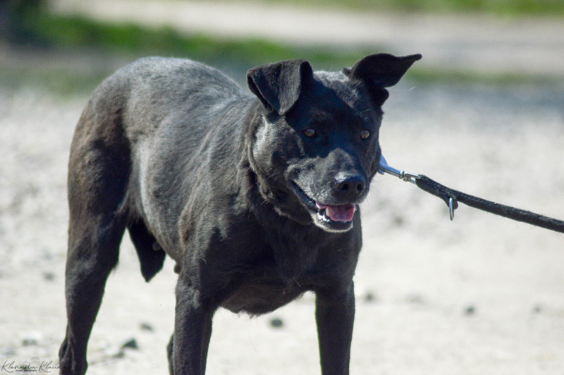 Trafiła do nas z poligonu wojskowego wraz ze swoimi szczeniętami. Wiele tygodni i miesięcy błąkała sie po poligonie, dokarmiana przez ludzi.