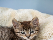 Kliper - uroczy, bury kocurek urodzony w maju 2025 roku.Los nie był dla niego łaskawy – przez ciężki koci katar stracił jedno oczko, a drugie jest w trakcie diagnozy. Ale wcale go to nie zatrzymuje!
