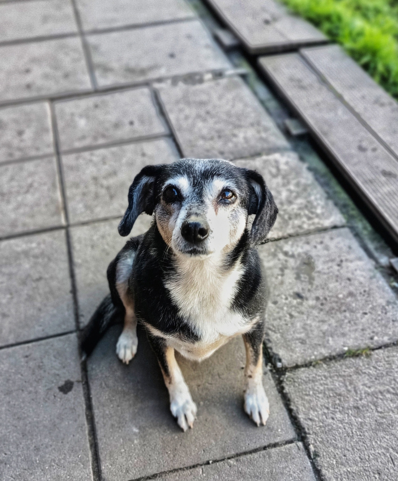 Kropka...Spokojna, delikatna dusza szuka swojego domu. Trafiła do schroniska wiele lat temu i niestety od tamtej pory nie udało się znaleźć dla niej domku.