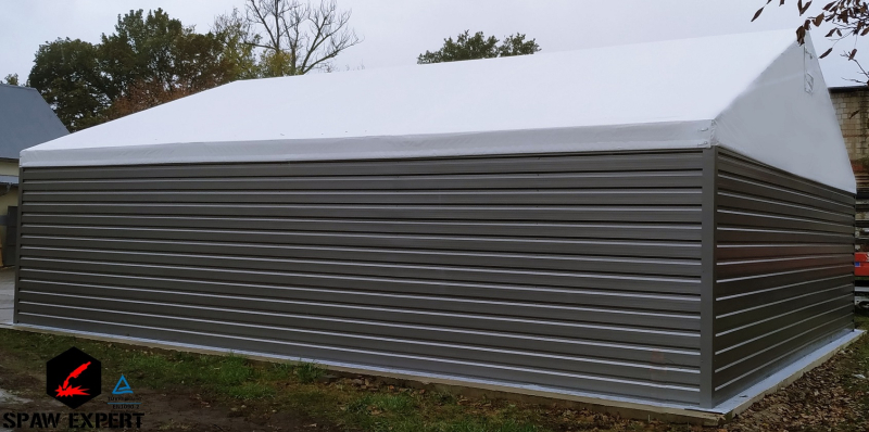 Dach hali wykonujemy z materiału namiotowego (PCV),