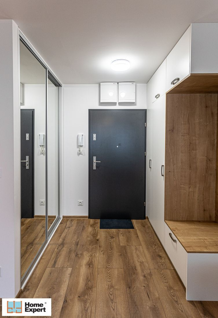 • Przestronny przedpokój z dużymi szafami wnękowymi z lustrami oraz garderobą.