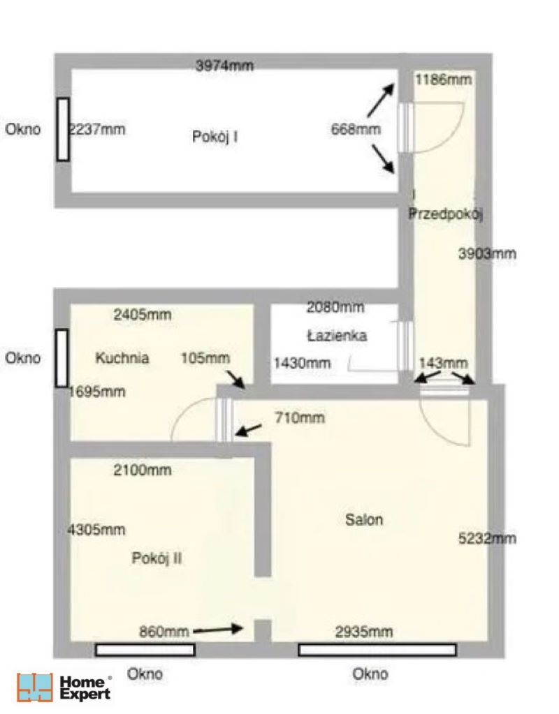 co umożliwia łatwe wydzielenie trzeciego, niezależnego pokojui uzyskanie pełnego rozkładu.
