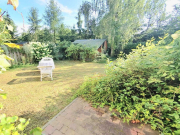 Ogród jest pięknie zagospodarowany, z drewnianą altaną, idealną do wypoczynku, grillowania czy pracy w ciepłe dni.