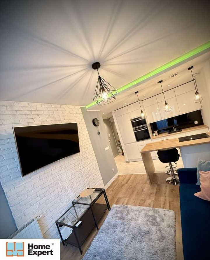 • 2 pokoje – przytulna sypialnia oraz jasny salon połączony z aneksem kuchennym,