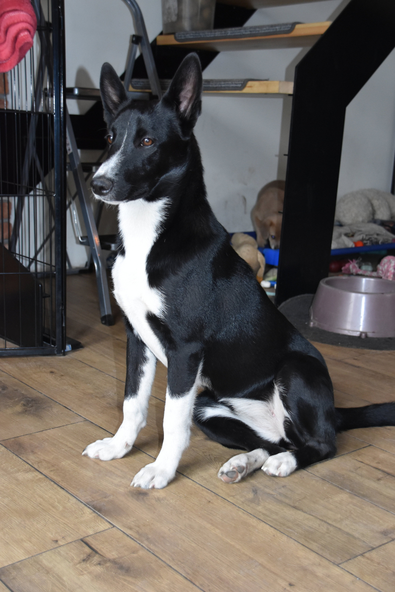 Do domu tymczasowego trafiła jako około kilkumiesięczny szczeniak. Jest słodka, bardzo uległa, szybka, lubi jeść i nawet w sytuacjach mocno stresujących jedzenie będzie dla niej motywatorem. Potrafi szybko się uczyć.  Jest psem dość szybko pobudzającym się, szczególnie przy innych psach ale jednocześnie w domu umie odpoczywać, śpi luzem na kanapie i odpoczywa w grupie psów bez klatki czy potrzeby izolacji.