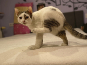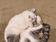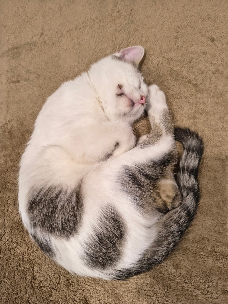 Kocurek jak na młodzieniaszka przystało uwielbia zabawy, ganianki z innymi kotami, wszystko go interesuje i przybiega właściwie na zawołanie. Doszczętnie zakochany w człowieku. Straszny misiak, wciska głowę w rękę żeby tylko go głaskać, a do tego straszna z niego gaduła. Przeżył już okropne rzeczy rzeczy w swoim króciutkim życiu, więc teraz już musi być tylko lepiej.