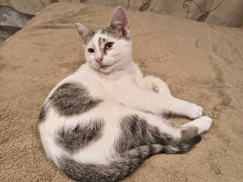 Olinek to kochany, cudowny kocurek, w wieku ok 4 miesięcy, który mimo ciężkiego startu w życie, bezgranicznie kocha człowieka!