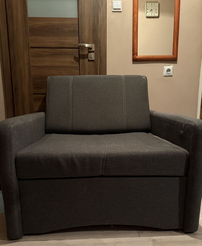 Sprzedam praktyczne łóżko składane z funkcją wygodnego fotela. Mebel był używany przez krótki czas, dlatego jego stan dobry – mechanizm składa się lekko, całość jest stabilna.