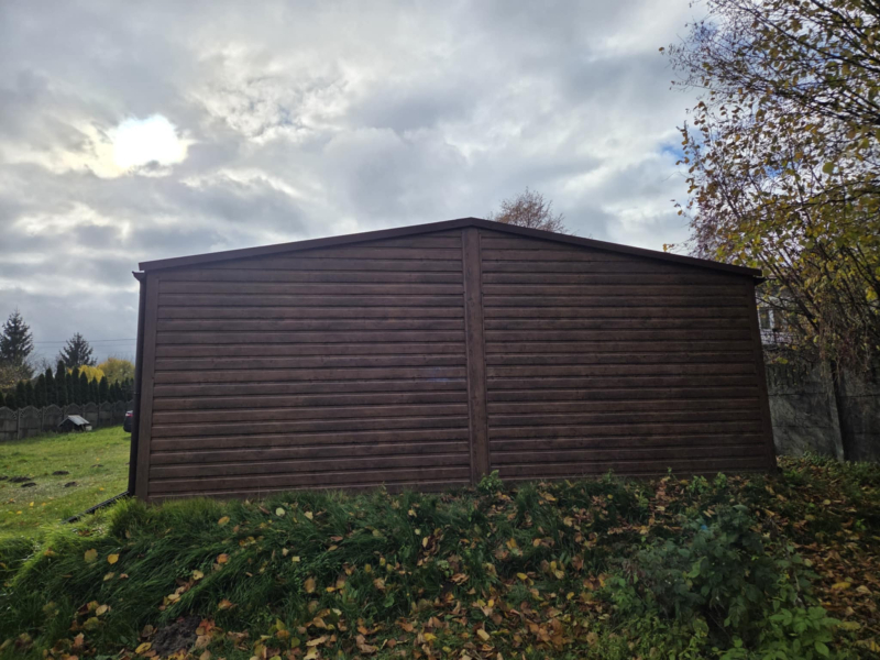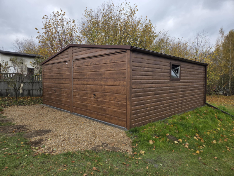 Garaż Blaszany dwustanowiskowy 6x5.8 Ciemny Orzech PRODUCENT