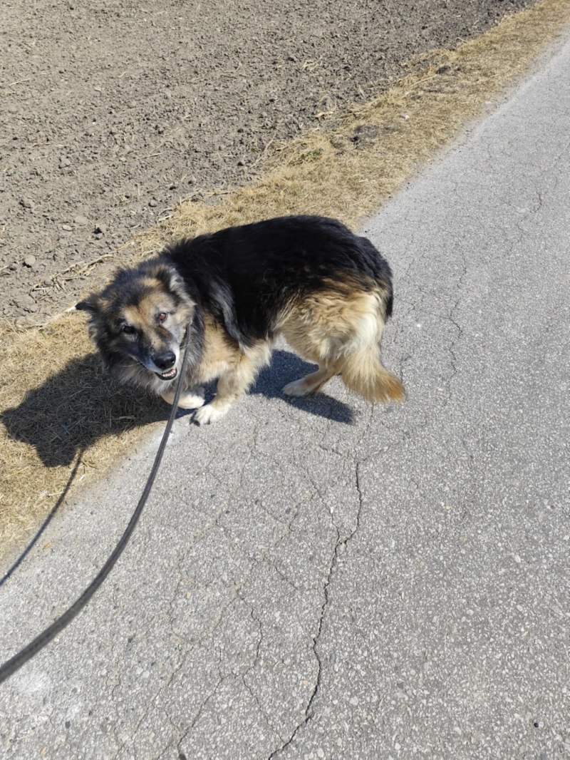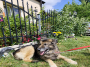 Aron to starszy pies w typie owczarka, który błąkał się bardzo długo. Trafił do gminnego kojca, a stamtąd do Schroniska.