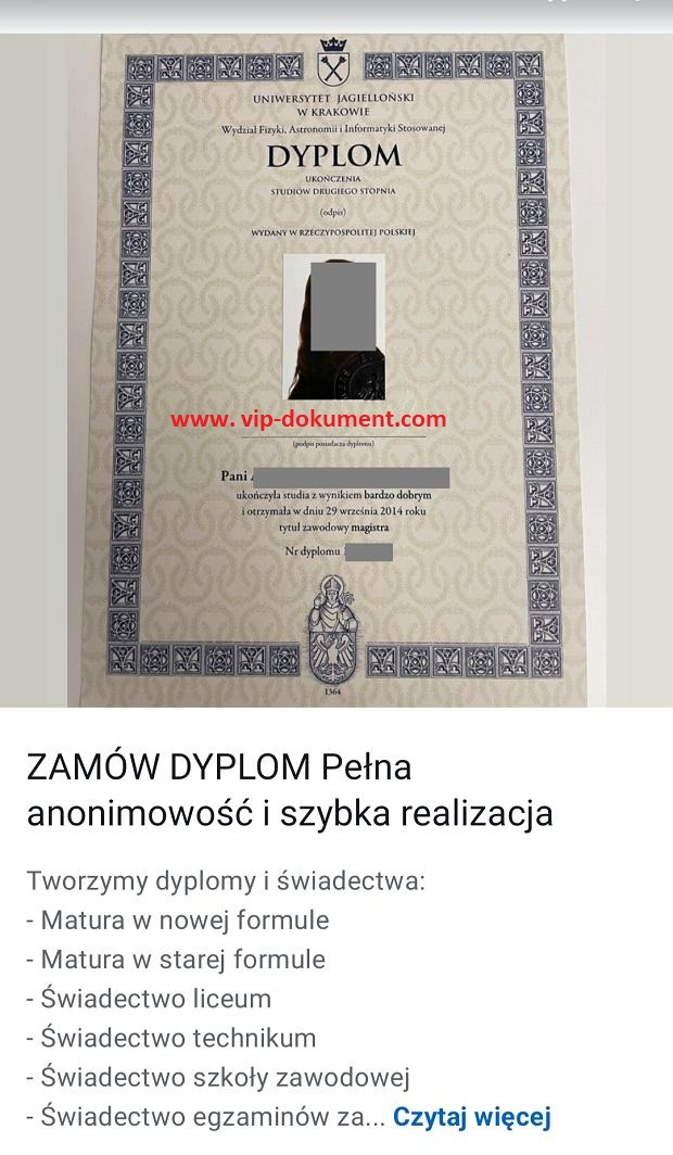 Kupię dyplom magistra z wpisem Kupię świadectwo szkolne z wpisem
