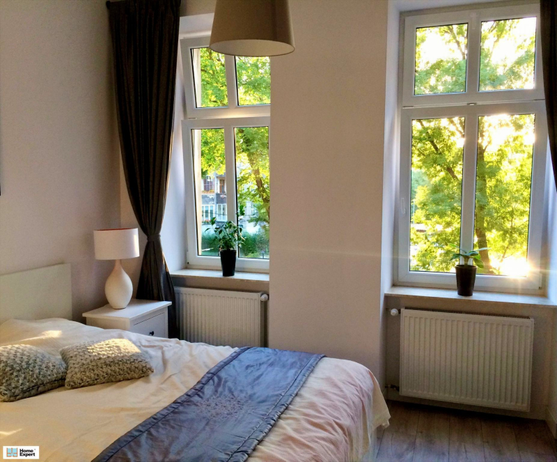 Ekspozycja okien na zachód, z widokiem na spokojne podwórze, zapewnia ciszę i relaks, mimo centralnej lokalizacji.