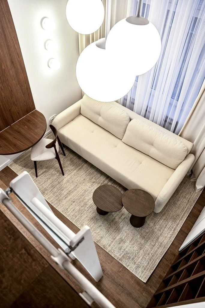 • pełne wyposażenie: pralka, zmywarka, lodówka, płyta indukcyjna, TV, sofa z funkcją spania, szafa gospodarcza, oświetlenie LED.