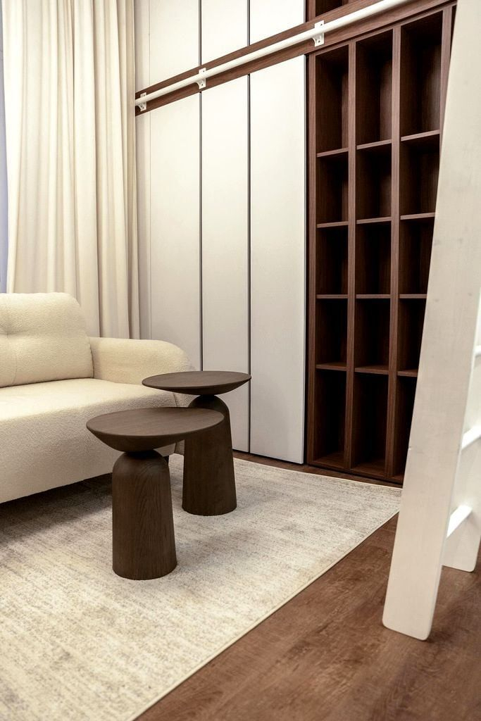 • antresola pełniąca funkcję sypialni z garderobą w zabudowie,