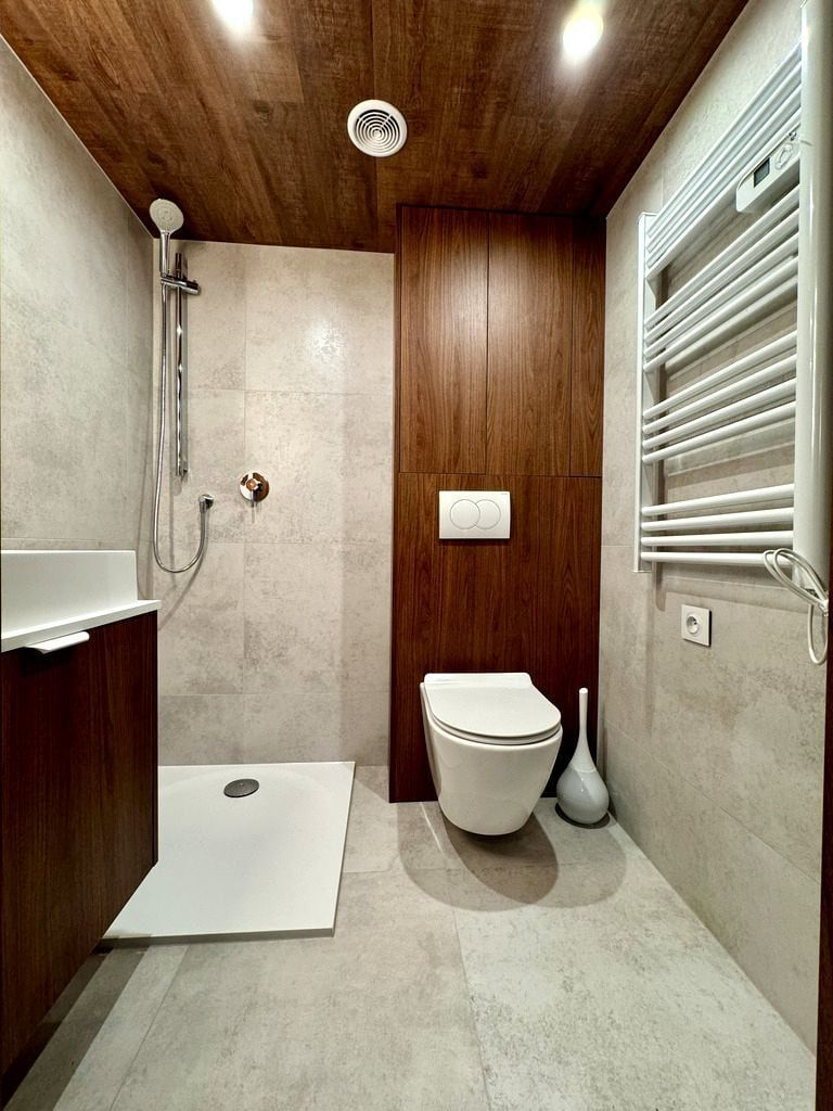 • elegancka łazienka z prysznicem i WC,