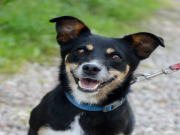 Natka, to przeurocza, około 5 letnia suczka. Trafiła do naszego schroniska prosto z ukraińskiej ulicy. Nie wiemy jak długo się tam błąkała i co wpłynęło na to, że Natka nie ma tylnych nóg. Mimo swoich deficytów, Natka jest niesamowicie przyjacielska. Na widok znajomych twarzy nieporadnie macha ogonkiem, co wygląda naprawdę fantastycznie.
