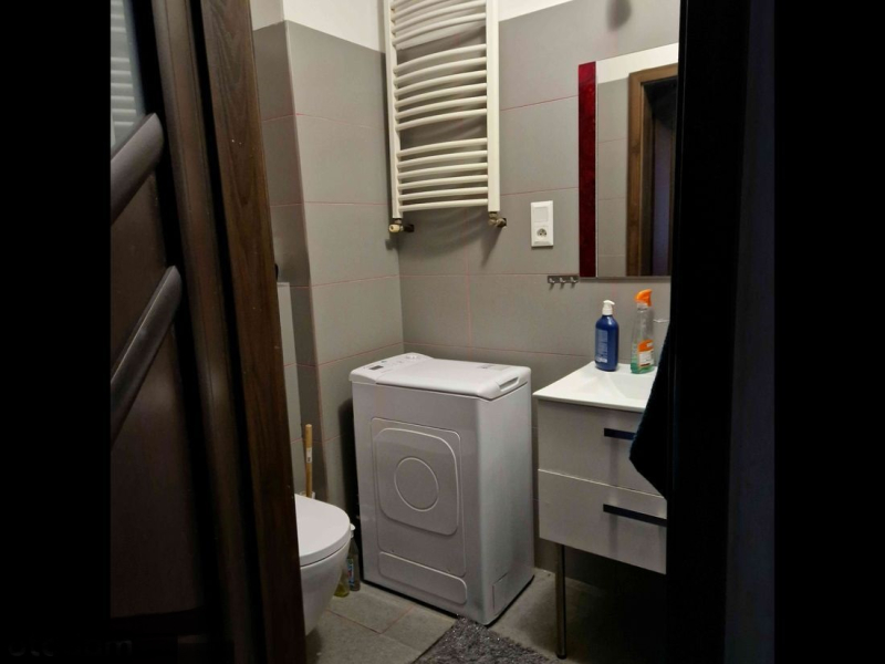 umeblowaną kuchnię oraz łazienkę z pralką. Pokój sypialny ma duza szafe