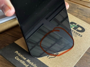 Sprzedam iPhone'a 16 Pro Max. Telefon ma niewielką rysę na ekranie, widoczną na zdjęciu, ale działa bez zarzutu.