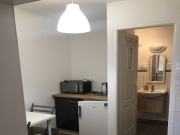 W lokalu jest wyposażenie, w tym meble, lodówka oraz kuchenka.