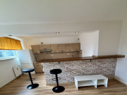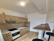 otwarta z blatem barowym i 2 krzesłami, lodówką i kuchnią elektryczną,-