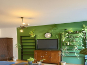 detale- piękne wnętrze z naturalnym drewnem, roślinami i przytulnym