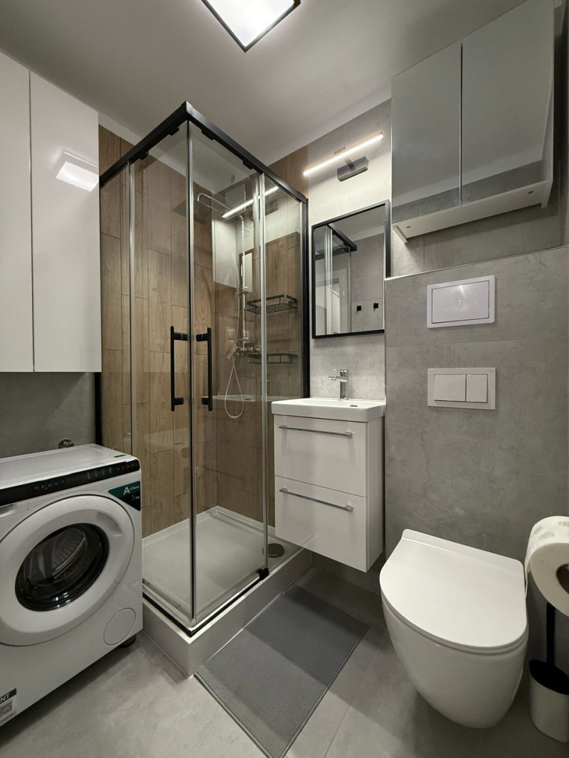 Wyposażenie obejmuje lodówkę i pralkę – możesz wprowadzić się bez dodatkowych inwestycji.
