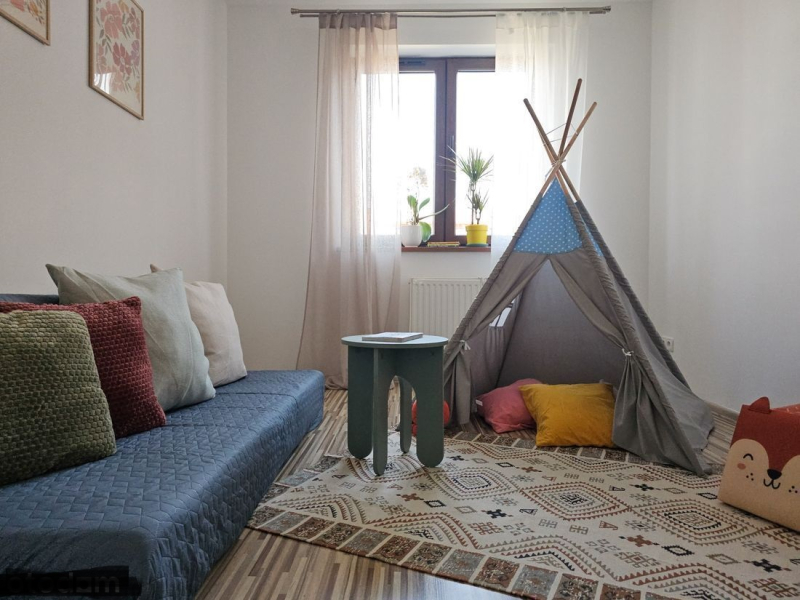 dla rodzin z dziećmi (widok z pokoju oraz kuchni na plac zabaw), ale nie