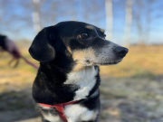 Lubi koty, ludzi i wszystko dookoła. Przepięknie chodzi na smyczy.