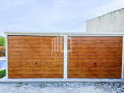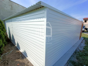 GARAŻ BLASZANY 6m x 5,8m poziom - spad tył 2x Brama + drzwi - jasny orzech +biały ID114 6x5,8